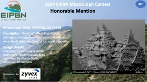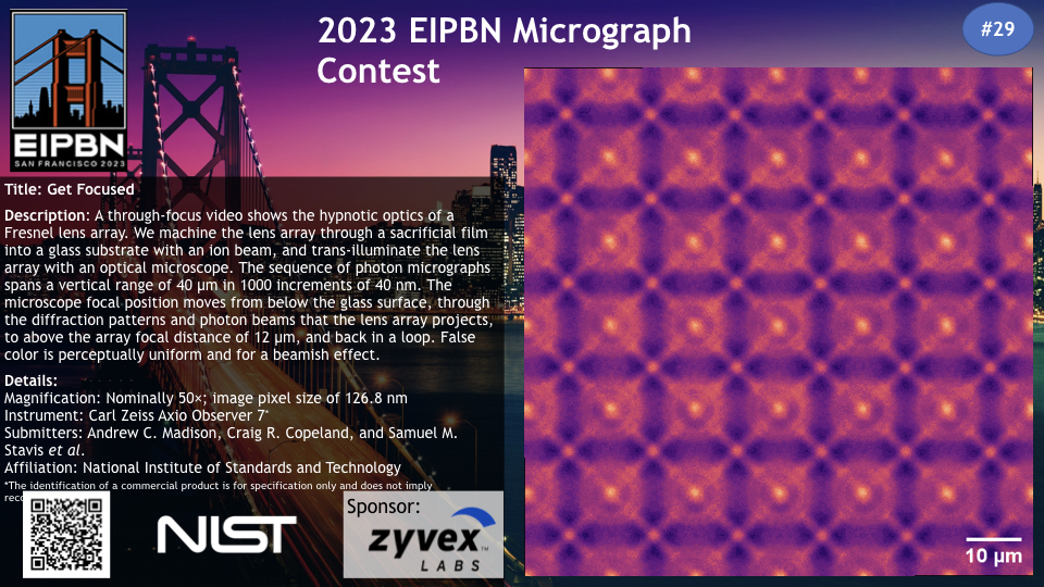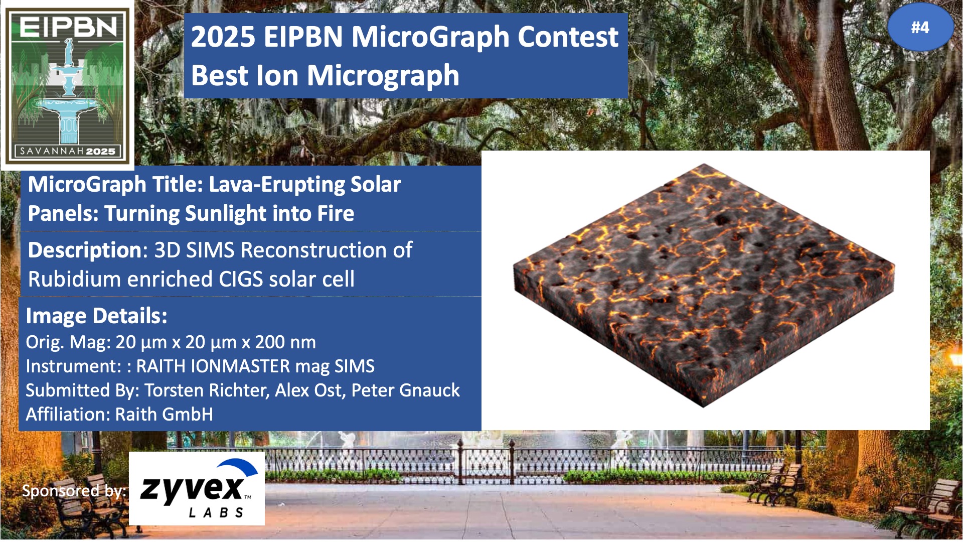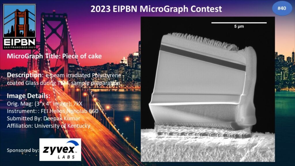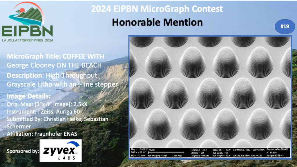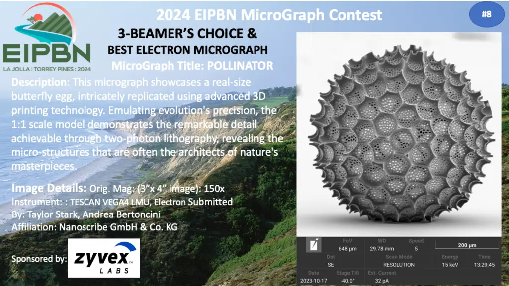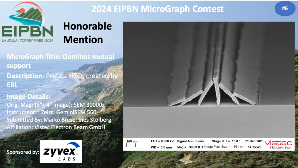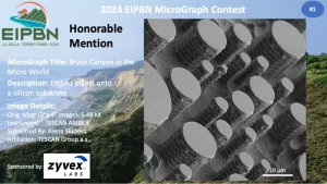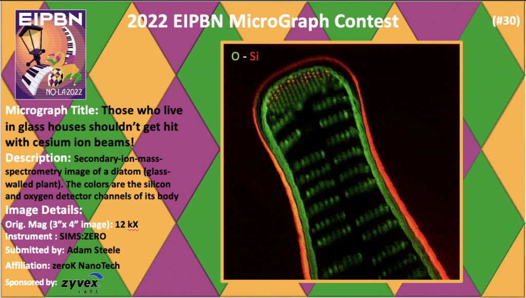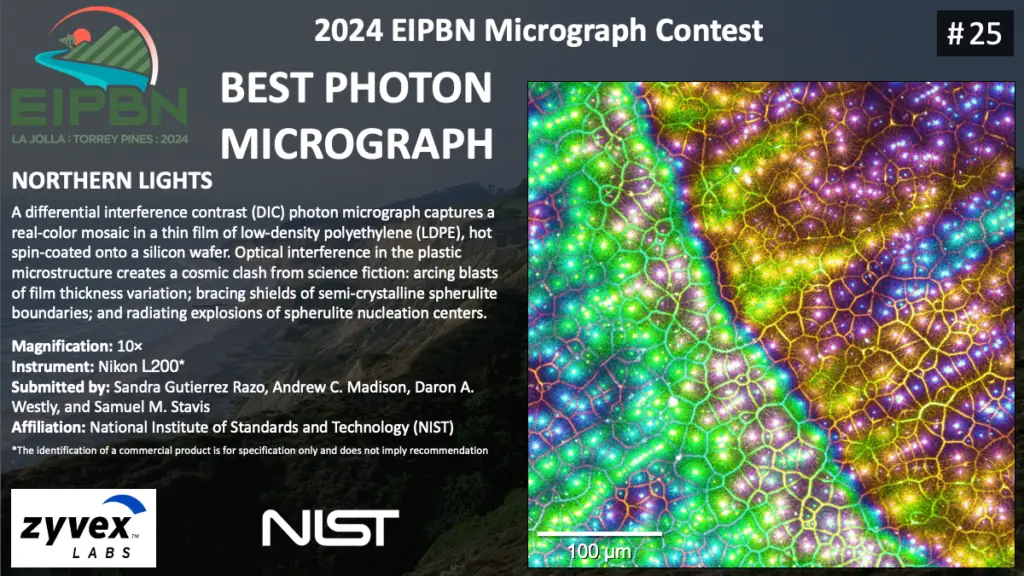 To highlight the importance of micrographs, EIPBN holds an annual micrograph contest. Submissions are sought from our community. Micrographs need not be related to research or to any paper or topic presented at the conference. Submissions may be purely for their beauty and ability to excite curiosity.
